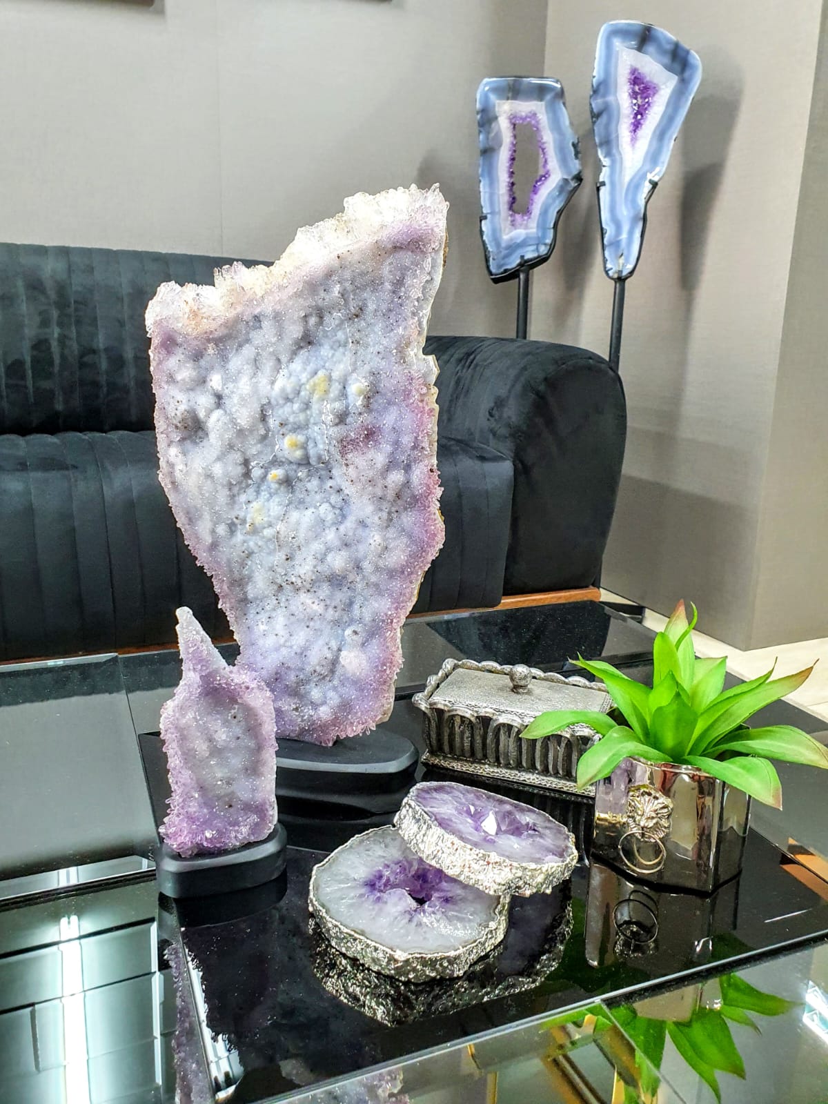 We combine the natural beauty of gemstones with the creative use of silver to breath taking effect along with carvings, collector pieces, crystal hearts, palmstones and towers.